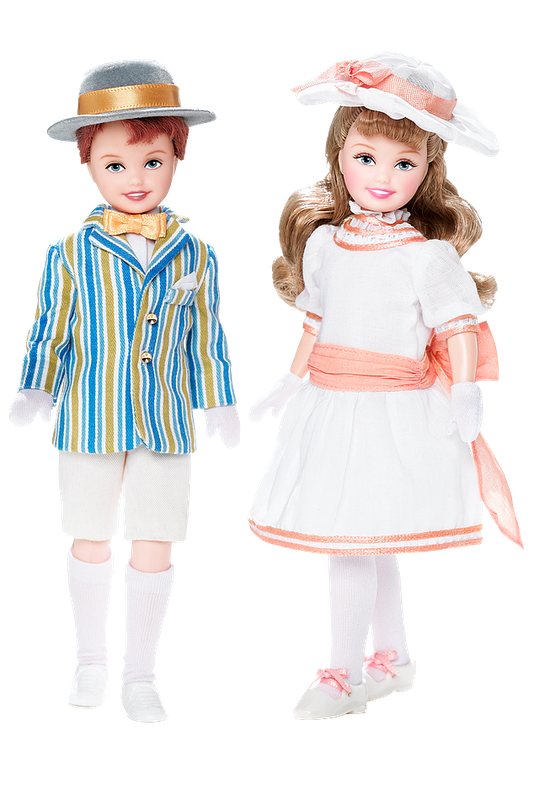 "Stacie y Todd celebran la clásica película de Mary Poppins vestido con recreaciones de los conjuntos usados en la escena del carrusel Stacie se ve absolutamente adorable con un vestido blanco, sombrero, guantes, medias y zapatos con toques de melocotón. Todd es igual de encantador en un color azul a rayas, chaqueta blanca y aceite de oliva, pantalones cortos de color azul con calcetines, zapatos, guantes y un sombrero a juego."